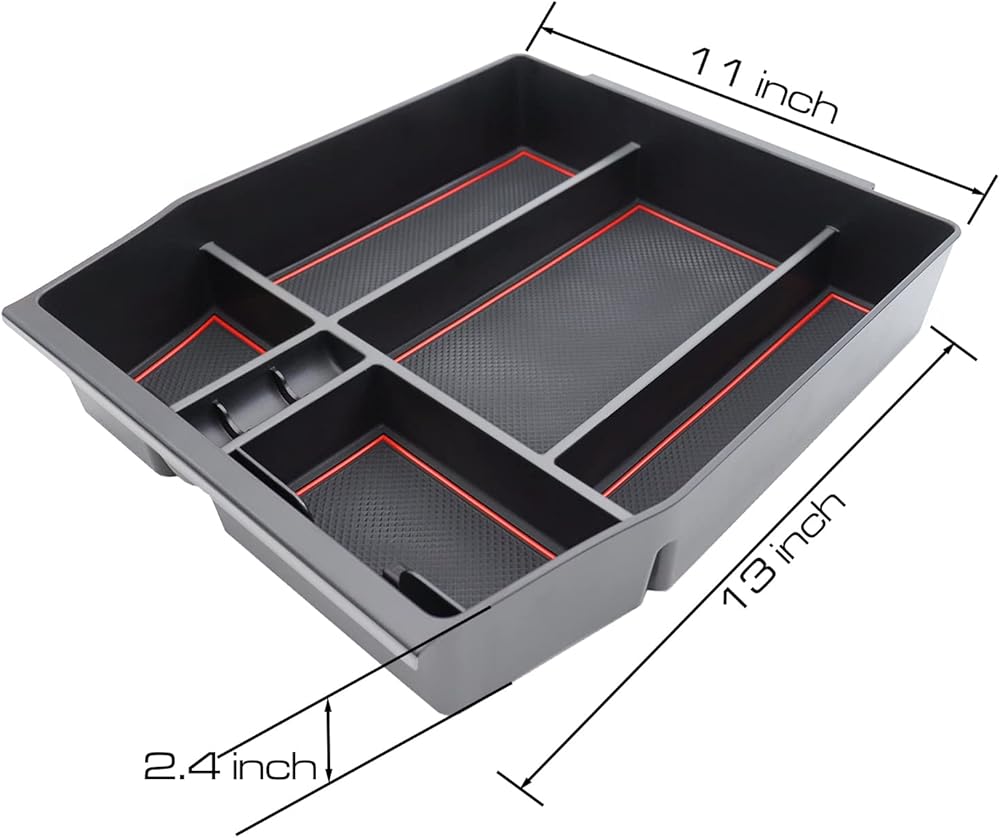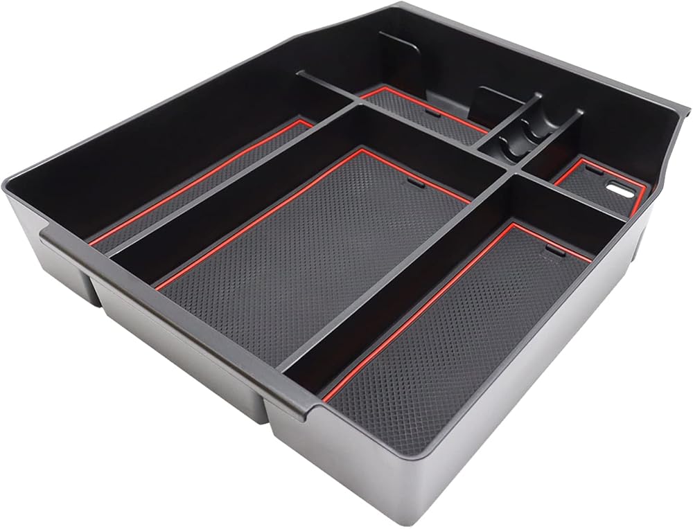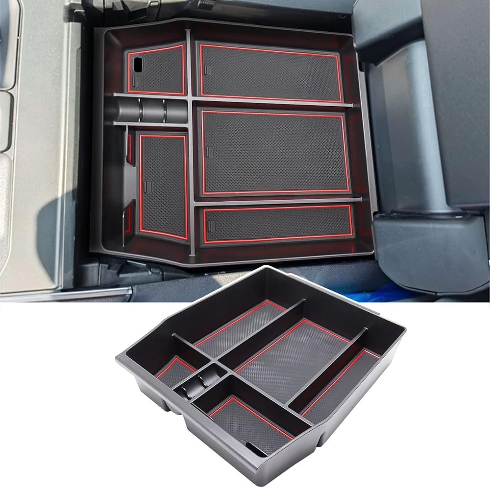 SENSHINE Center Console Organizer Tray for Ford F150 2021 2022 2023 2024 Accessories Car Interior Secondary Storage Armrest Box Insert Hidden Cubby Drawer (Red Trim)