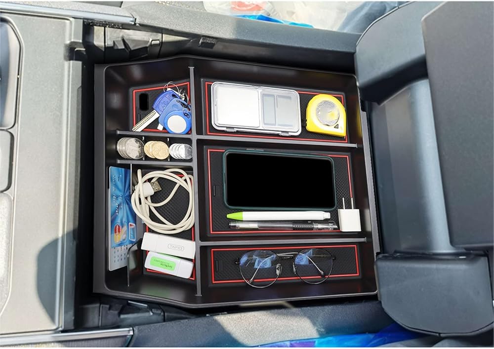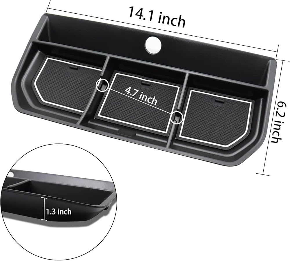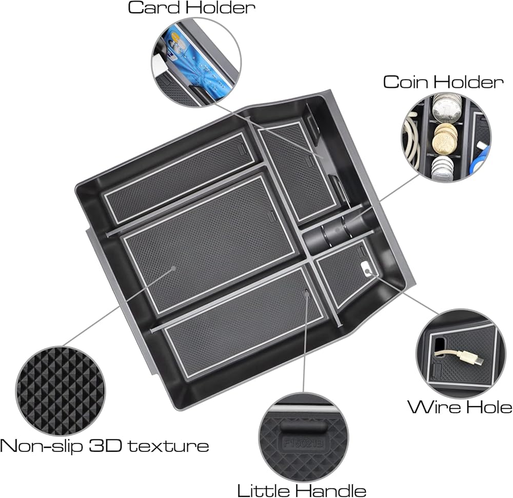 【Funtion】MUST-HAVE for Ford F150 2021 2022 2023 2024 Accessories. This F150 center console tray is deeper than other tray. With the bigger space, you can keep your glasses, pens, coins and business cars organized well.