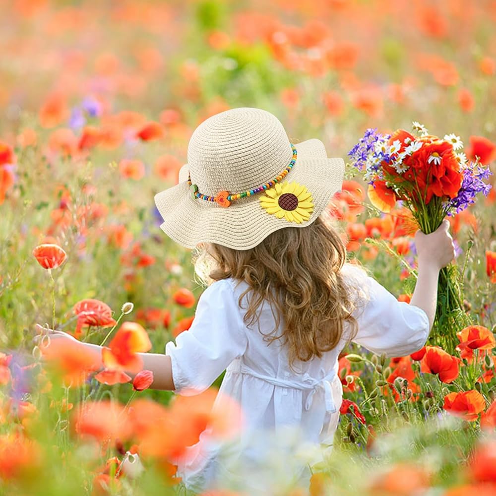 Kids Straw Hat and Sunglasses: You will get 1 girls straw sun hat and 1 pair of sunflower sunglasses, both to help your child avoid the distractions of direct sunlight and to make your child even cuter in the crowds.