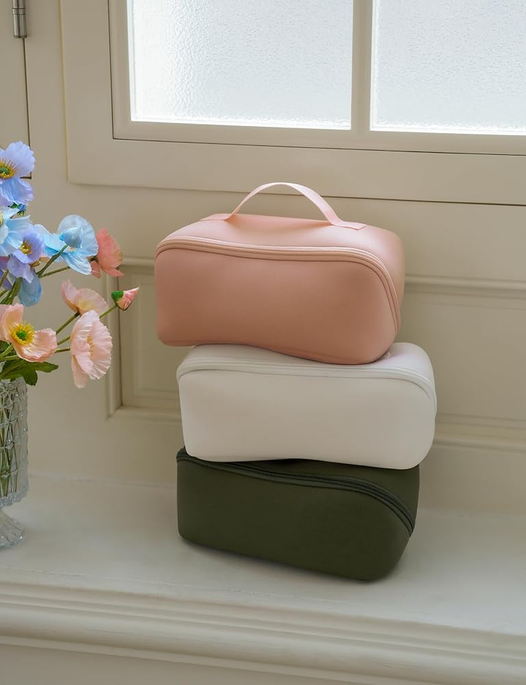 ✨ 𝑬𝒂𝒔𝒊𝒆𝒓 𝑨𝒄𝒄𝒆𝒔𝒔 𝑫𝒆𝒔𝒊𝒈𝒏: Meet the Flat makeup bag that keeps up with your pace! It opens flat, allowing you to see all your makeup at once. When you're ready to go, simply scrunch it closed for quick and easy packing.
