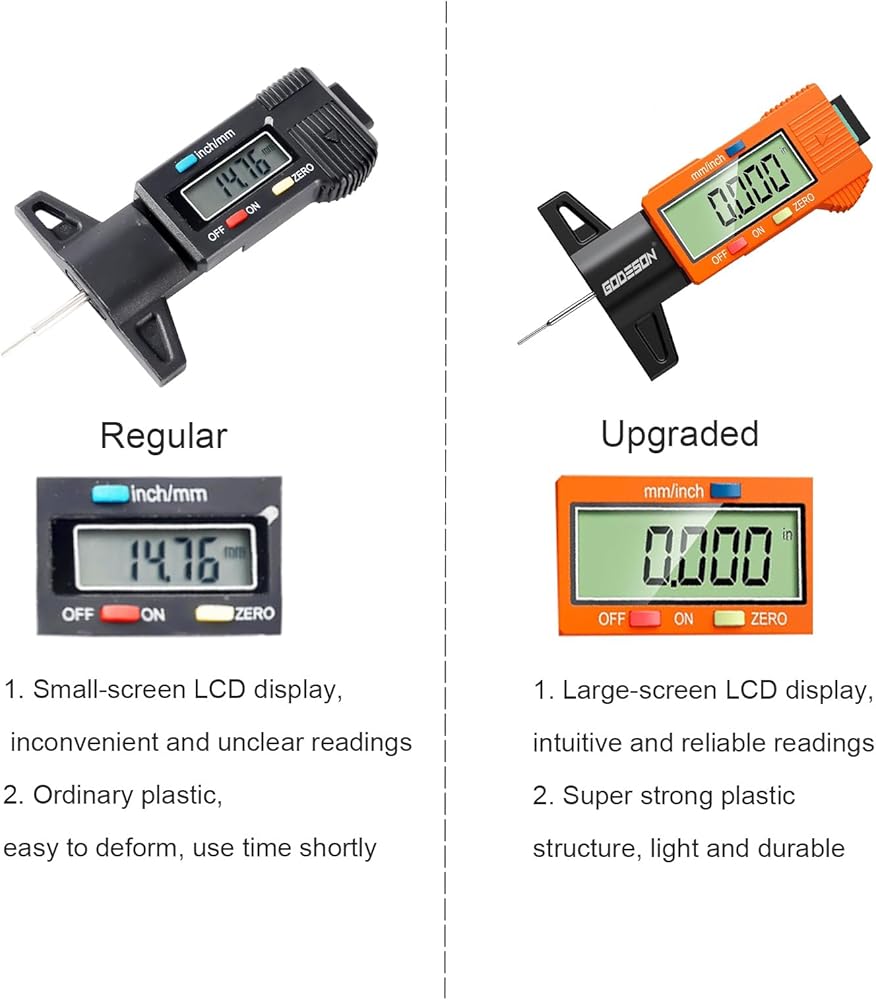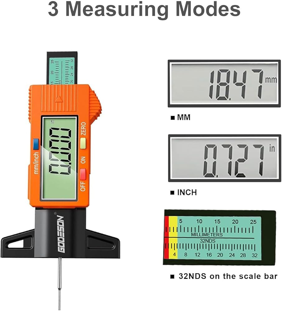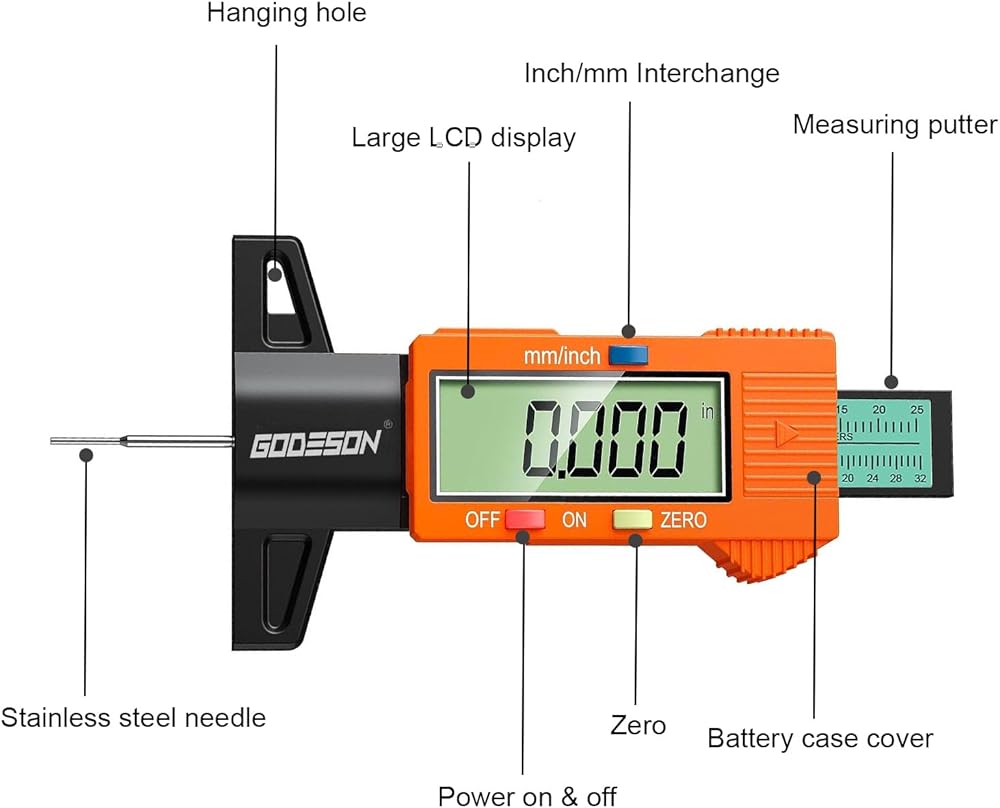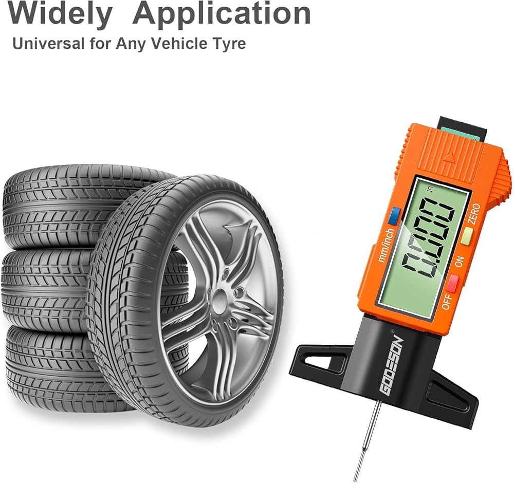 GODESON Tire Tread Depth Gauge,Digital Tire Tread Depth Gauge with Color-Coded Bar,Tread Depth Gauge in 1 Inch/25.4 mm,Tire Depth Gauge with Large LCD Display Suitable for All Vehicle Tires-Orange