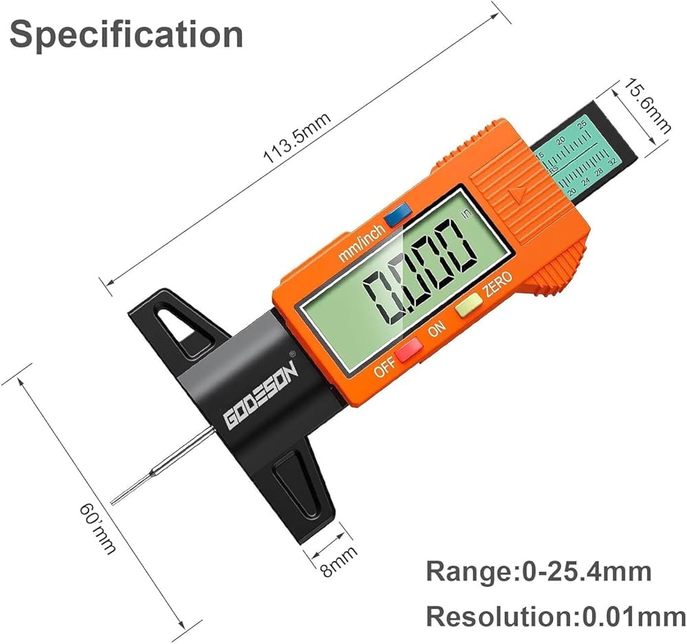 1. Accurate Measurement: This tire depth gauge features a color-coded bar for easy interpretation of tread depth levels. The measurement range is 0-1 inch / 0-25.4 millimeters, with the ability to accurately measure tread depth down to 0.01 millimeters.