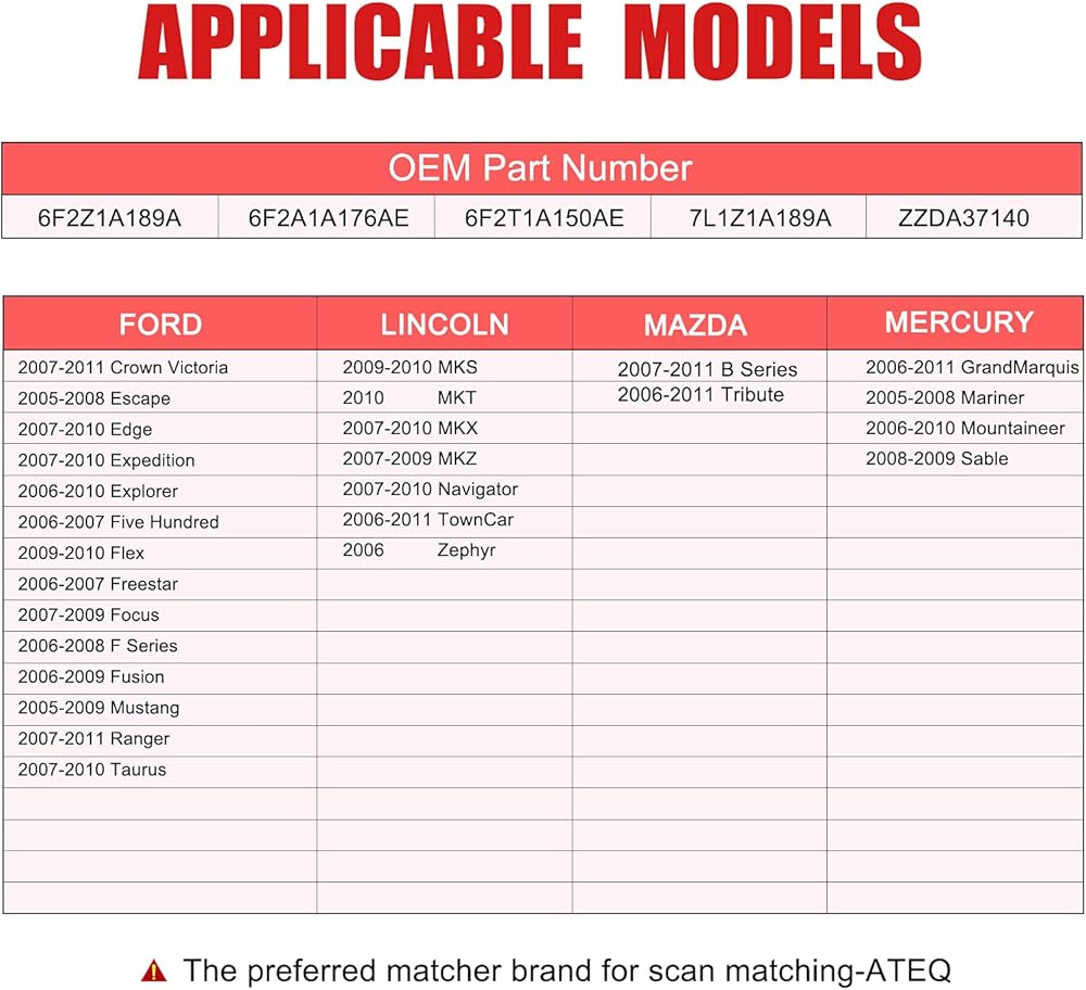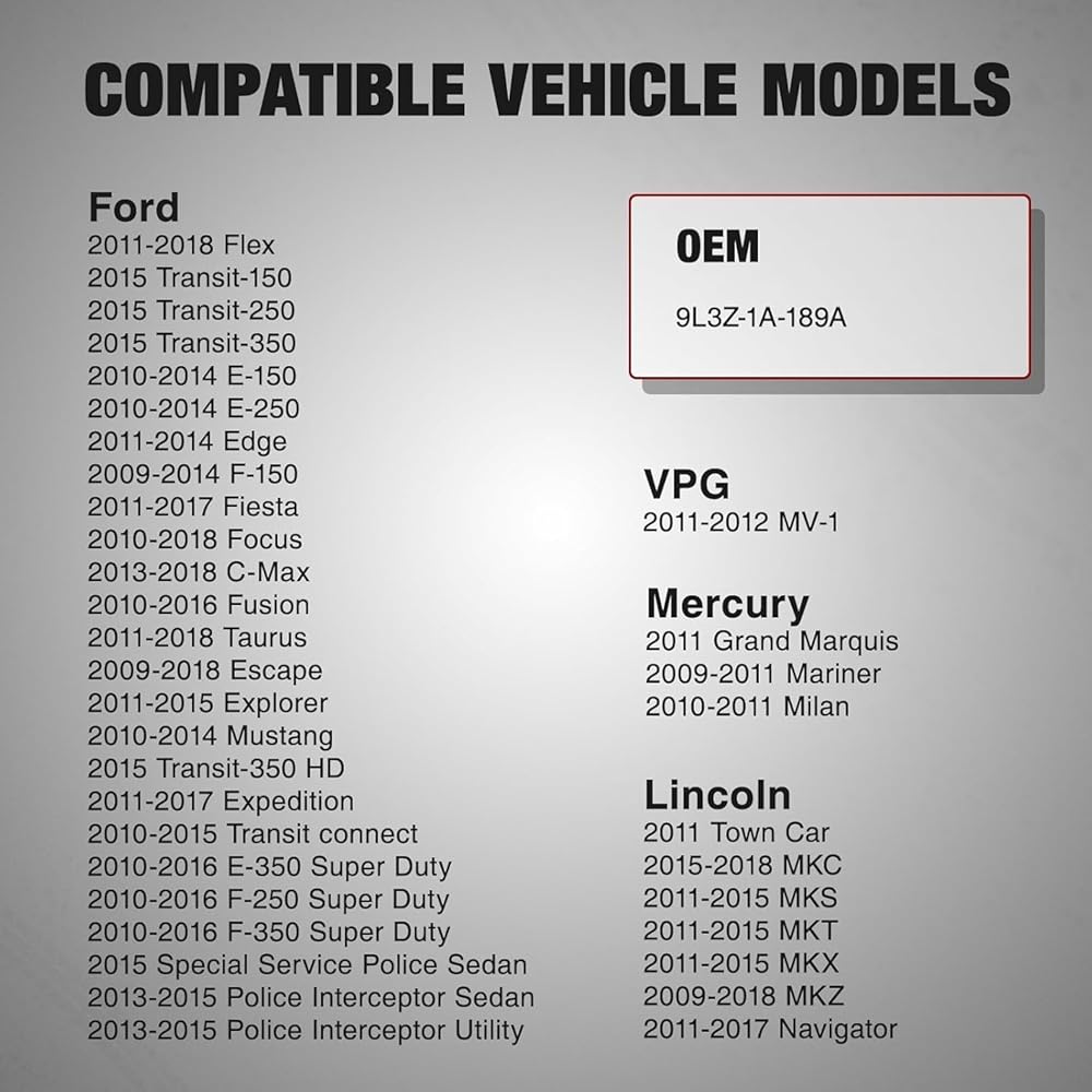 【𝐅𝐈𝐓𝐌𝐄𝐍𝐓】- Compatible with 2009-2010 Lincoln MKS, 2010 Lincoln MKT, 2007-2010 Lincoln MKX, 2007-2008 Lincoln MKZ, 2007-2009 Lincoln MKZ, 2007-2008 Lincoln Mark LT, 2007-2010 Lincoln Navigator, 2006-2011 Lincoln Town Car, 2006 Lincoln Zephyr, 2007-2011 Mazda B2300, 2007-2011 Mazda B3000, 2007-2011 Mazda B4000, 2006-2011 Mazda Tribute, 2006-2011 Mercury Grand Marquis, 2005-2008 Mercury Mariner, 2006-2010 Mercury Mountaineer, 2006-2009 Mercury Milan, 2006-2009 Monterey, 2008-2009 Sable