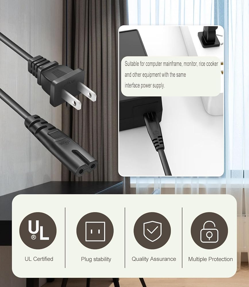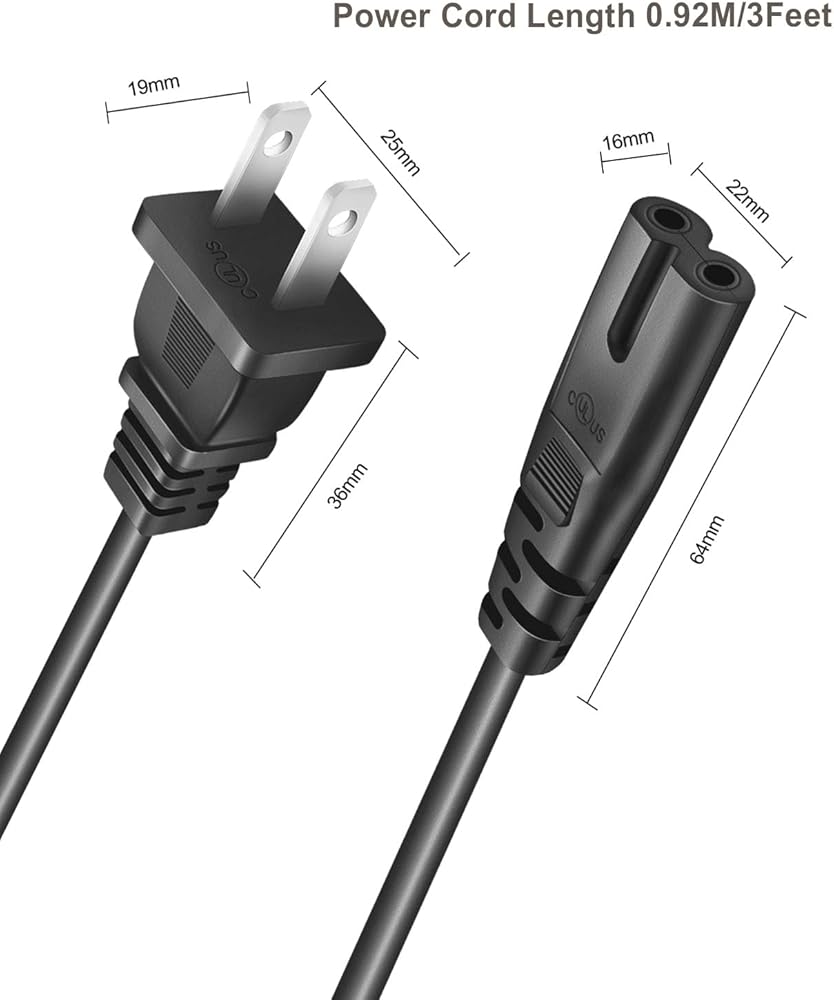 ✔ Power Cord Type: 18AWG/NEMA 1-15P/2 Prong/Extra Long Non-Polarized 6 Feet AC Power Cord.