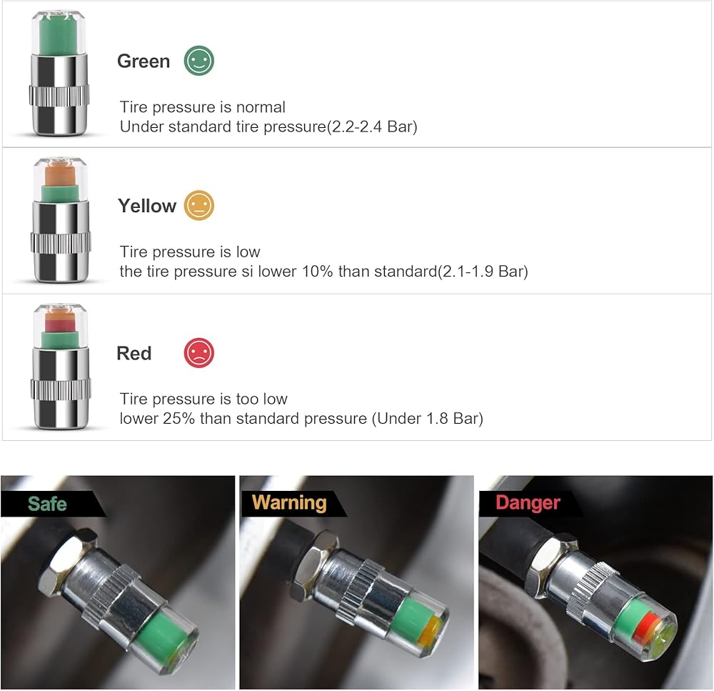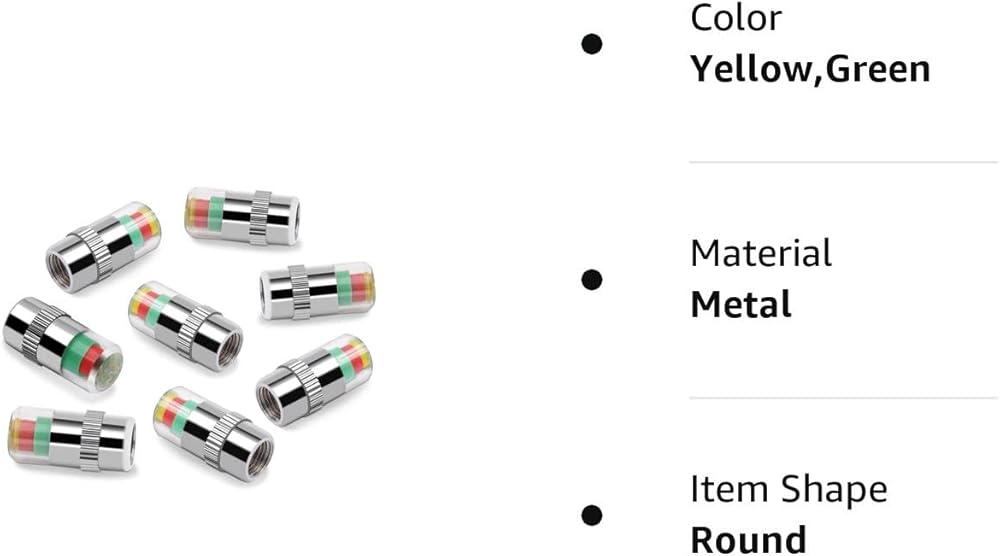 8 pcak Tire pressure indicator valve stem cap. Note: When you perform automatic car wash, please remove the tire pressure cap.