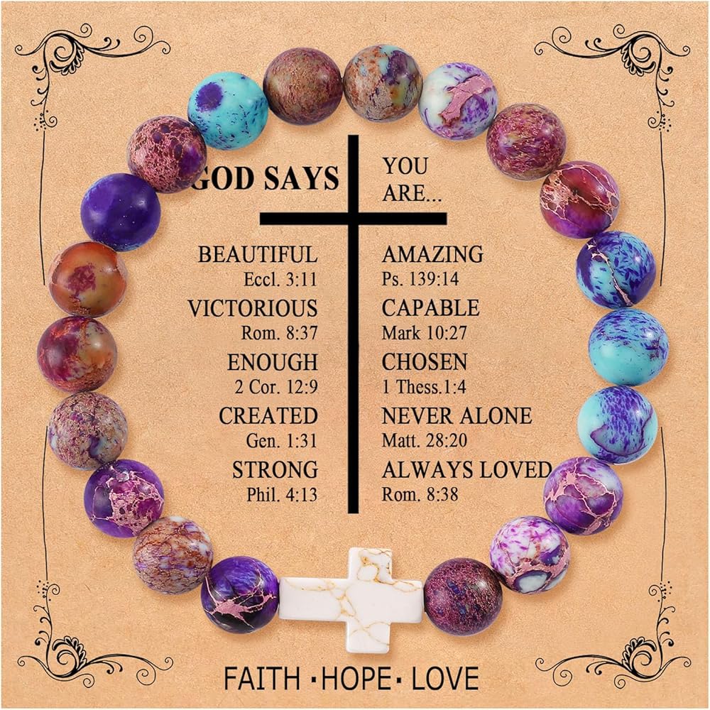 QWNHONEY Cross Bracelet for Women Christian Gifts Colorful Imperial Stone Catholic Religious Jewelry Mothers Day Birthday Christmas Gifts for Women Mother Daughter Sister Girlfriend Grandma Wife