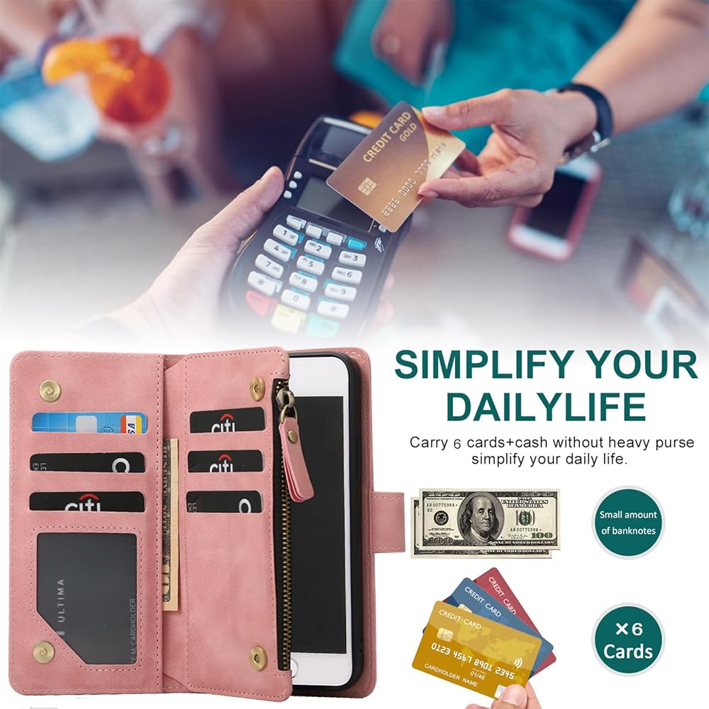 ★2 in 1 Wallet Case: RFID Blocking With 5 card holder slots, one visible ID Slot and zipper money pocket. You can carry your ID cards, credit/debit cards, driver liscense, several cash and small notes without having to take your bulky wallet with you.