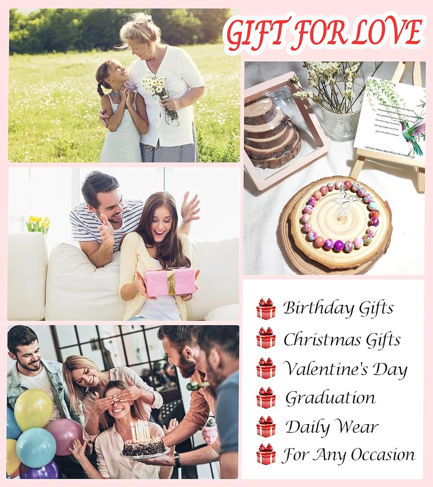 Bracelets Material: Hummingbird bracelet made of 8mm natural stone beads,each piece is unique, and the one you receive may vary from the image displayed due to the distinctiveness of the natural stones.Let this Hummingbird bracelet bring the receiver strength and good luck.