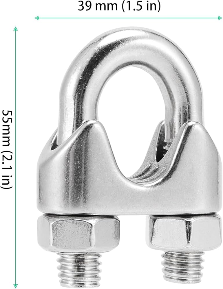 ● Well made and good fitment. Just the right size, these stainless steel wire rope clamps are light in weight but very strong.