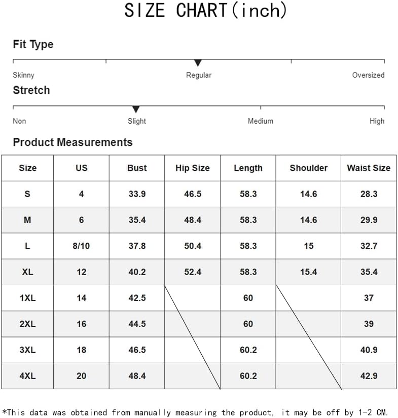 4XL: Bust---48.4", Waist---42.9",Length---60.2"