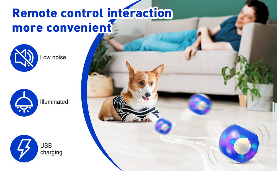 🐶 USB Rechargeable Peppy Pet Ball: The interactive dog ball for boredom built in 200mAh battery, no need to replace the batteries, just charging with USB cable for 2 hours, and provides your doggy up to 5 hours of entertainment time. Built-in multi-colors LED lights inside the dog ball, it can attract more attention and brings more joy to your pets. If you find that moving dog toys is unresponsive or slow, this is a sign of low power. After recharging, the pet ball will return to a positive sta