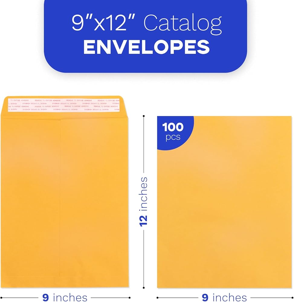 100 Pack Envelopes 9x12: The white envelopes 9x12 can be easily addressed or labeled, and the self-sealing design is a great time saver for your household, office, business, legal mailing and more!