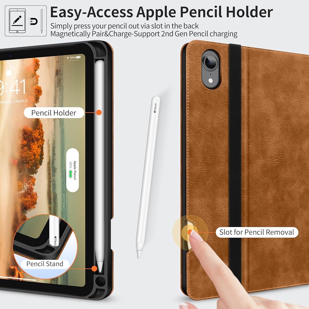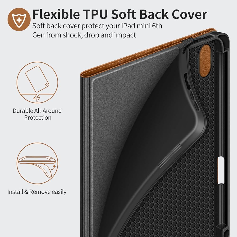 Built-in Apple Pencil Holder - This iPad Mini 6th generation case holds your Apple pencil tightly, protects your apple pencil from losing. Press the opening behind the pencil it just pops out. [NOTE DON'T INCLUDE Apple pencil]