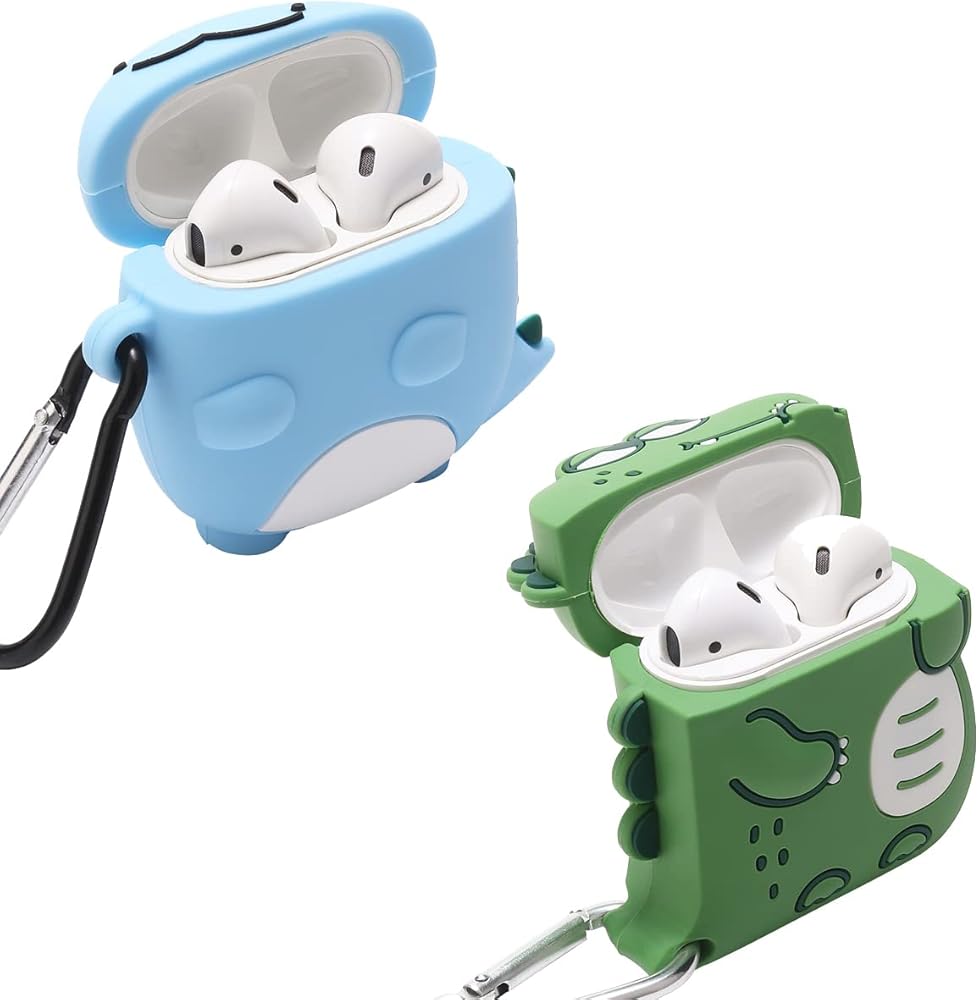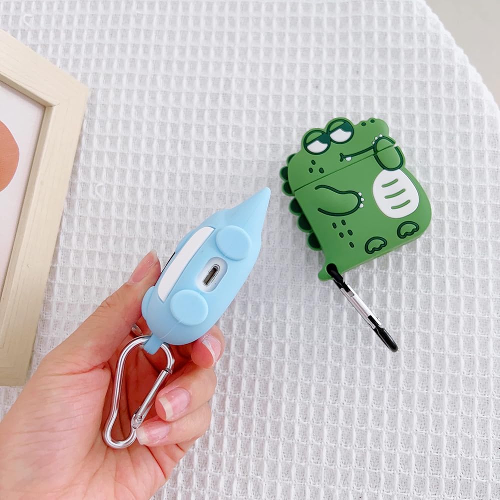 【2 Pack】 Lubiogio 3D Cute Crocodile+Dinosaur Case for Airpod 2/Airpod,3D Cartoon Kawaii Animal Airpod 2 Design Kids Teens Girls Women Soft Case for Airpod 2nd/Airpod 1st Case(Crocodile+Dinosaur)