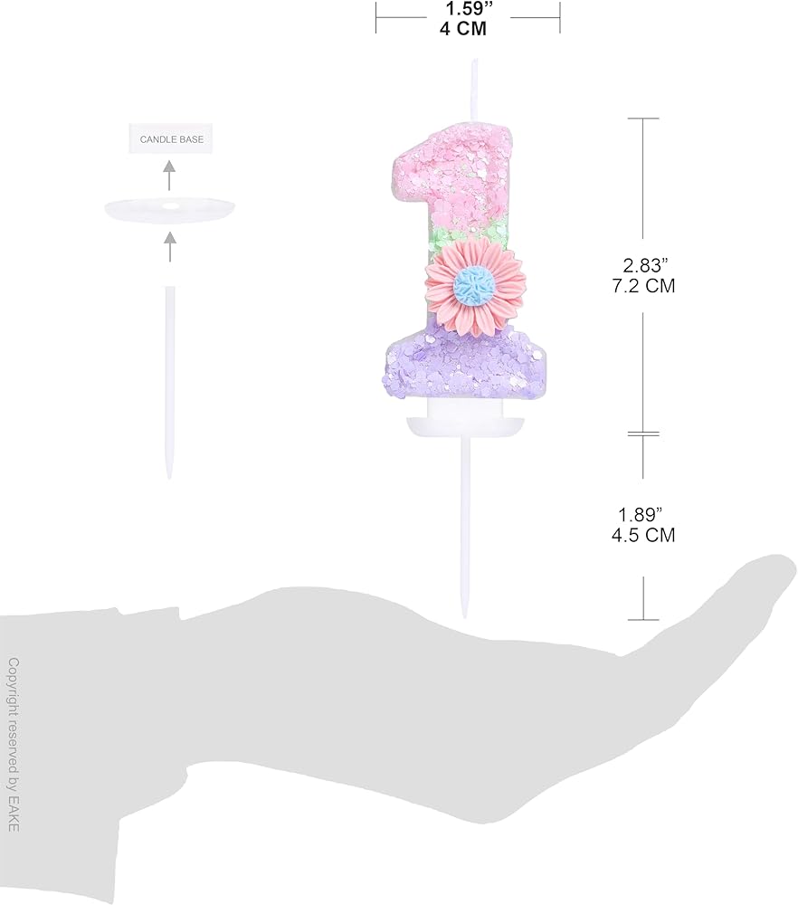 • Package includes 1 x Glitter Multi-pastel-colored number 1 birthday candle, 1.58” W x 2.83” H
