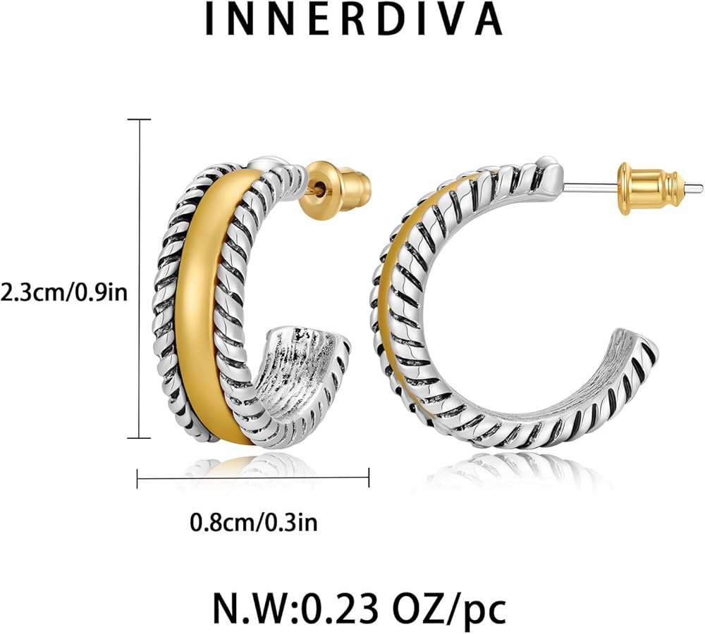 INNERDIVA Gold Hammered Square Earrings for Women Geometric Stud Earrings Vintage Statement Earrings