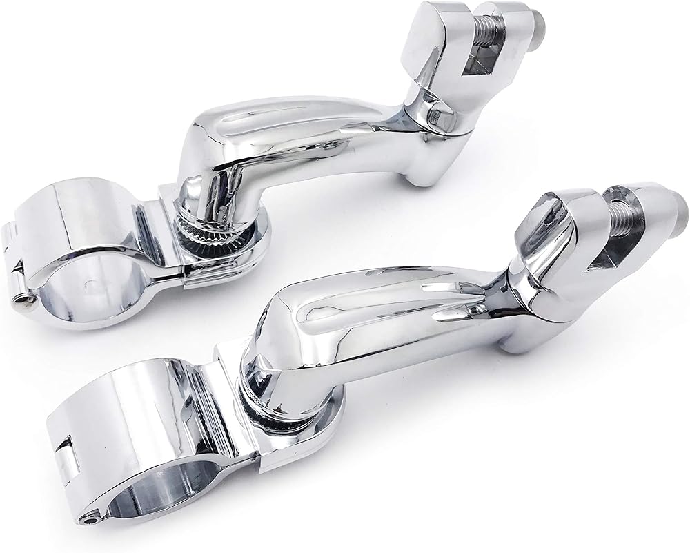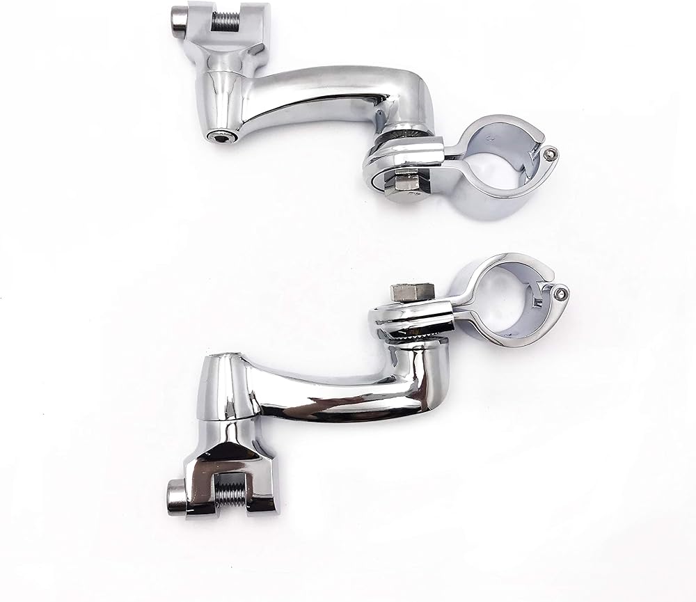 Chrome-plated clamp holds its place on the engine guard, and the arm locks the peg securely in position