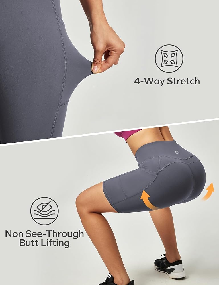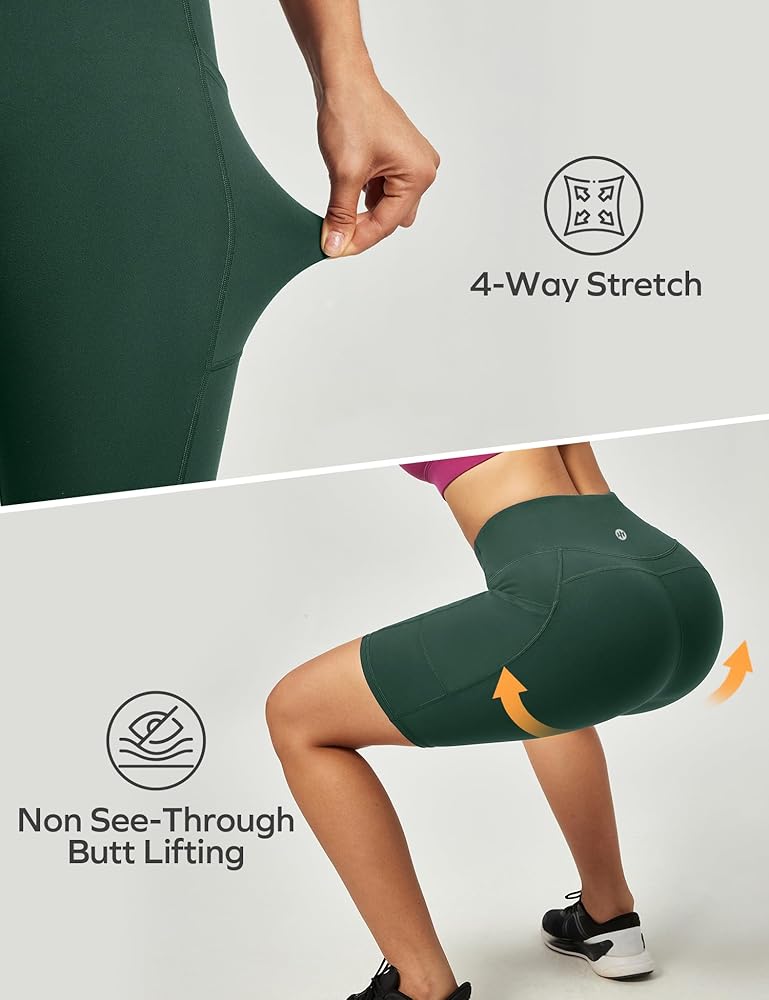 Innovative Cool-Tech Fabric - Feel fast and free in our yoga shorts. The highly breathable material wicks moisture way and ensure maximum ventilation in summer while our pioneering Cooling Technology for spandex shorts women will offer you instant cooling feel. Stay cool, dry and comfortable throughout workout, yoga, running, cycling or any other activity in hot days.