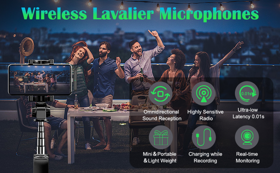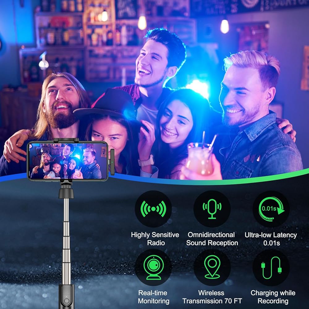 Plug and Play&Automatic Connection: Equipped with Wireless Direct Plug and Play technology, this wireless clip on microphone eliminates the need for Bluetooth or apps. The automatic connection between microphones and receiver makes this wireless omnidirectional microphone perfect for various purposes such as interviews, video recording, live streaming, podcasting, and vlogging
