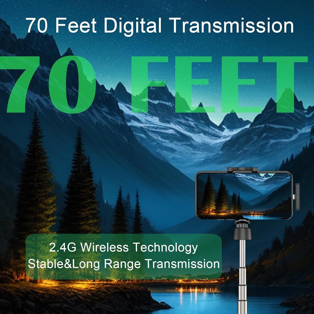 14 Hours Recording&2.4GHz Digital Transmission: The dual wireless lavalier microphones provide an uninterrupted 14 hours of continuous recording when fully charged, making it perfect for outdoor interviewing, video recording, podcasting, and vlogging without worrying about battery life. The 2.4GHz digital transmission of the wireless mini microphone is designed to offer a stable, high-fidelity audio receiving range of up to 70 feet in open spaces