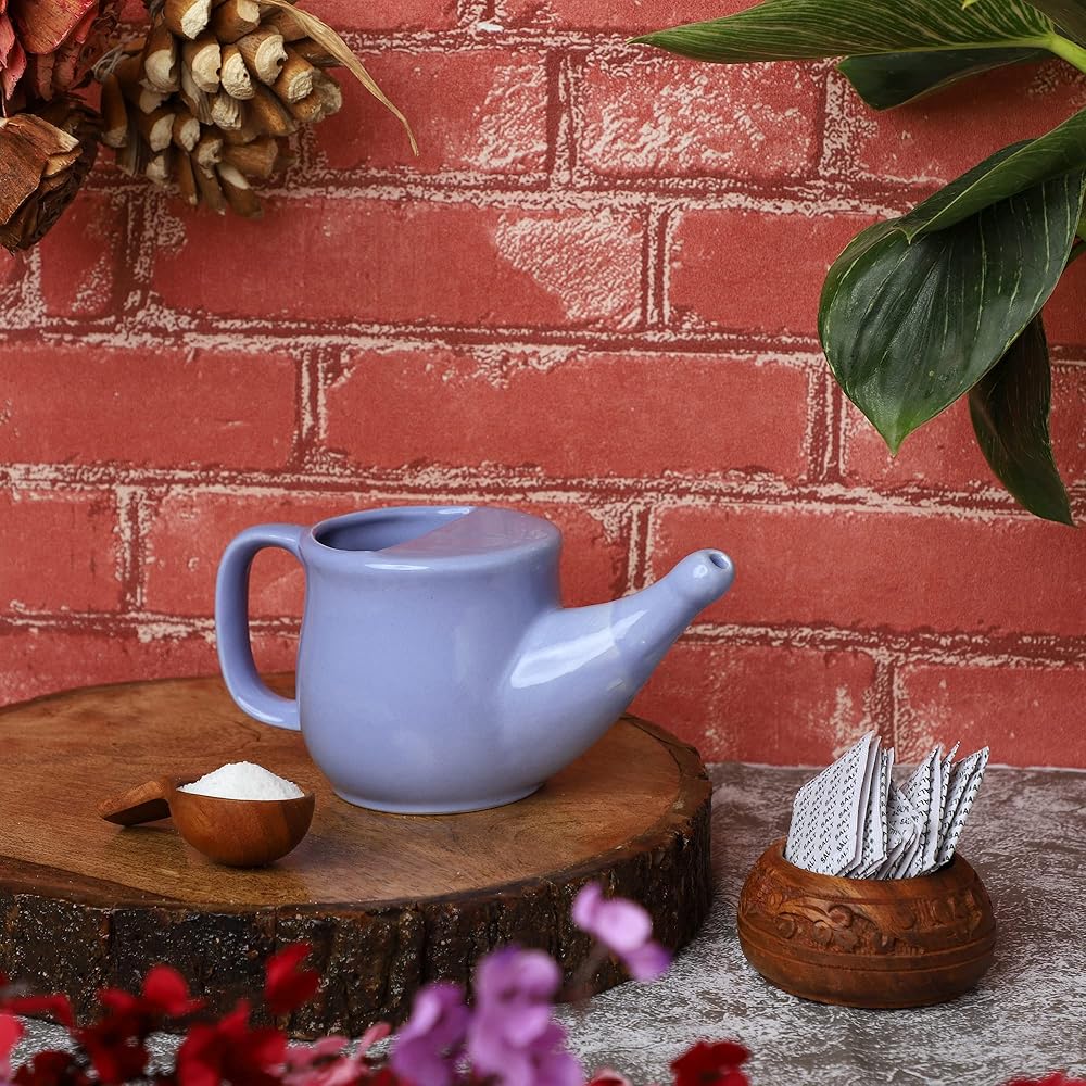 Neti kriya or jala neti is an ancient Ayurveda technique used to cleanse the nasal tract of any impurities. For ages, yogis have practiced this technique for the innumerable, potent benefits. In the present day too, people all over the world use this excellent technique to achieve dramatic health results especially with those suffering from nasal tract health issues such as sinus. Regular practice of neti kriya is proven to reduce the effect of sinus and allergies without any side effects. Our ceramic neti pot for nasal cleansing is a compact and travel-friendly option for people on the go. As compared to plastic neti-pots, these are much more sturdy and durable options and will last you for a very long time.
