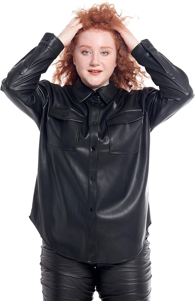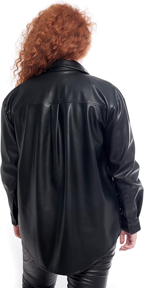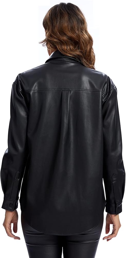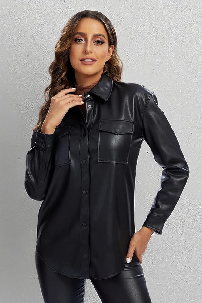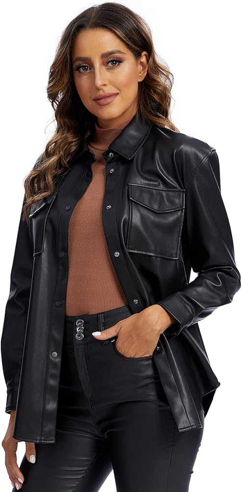 Classic black pu pleather jacket shacket for women