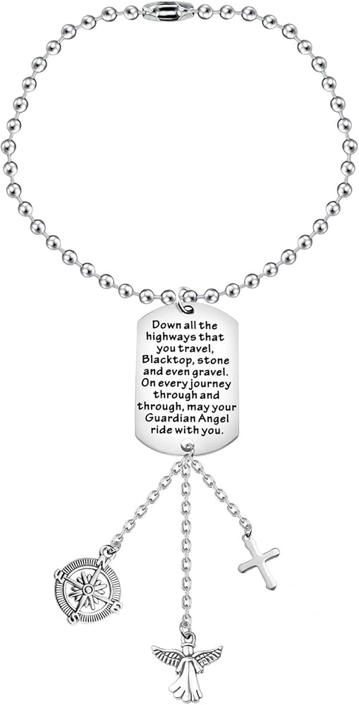 Driver gift this stainless steel Charm Ornaments engraved "Down all the highways that you travel, Blacktop, stone and even gravel. On every journey through and through, may your Guardian Angel ride with you."