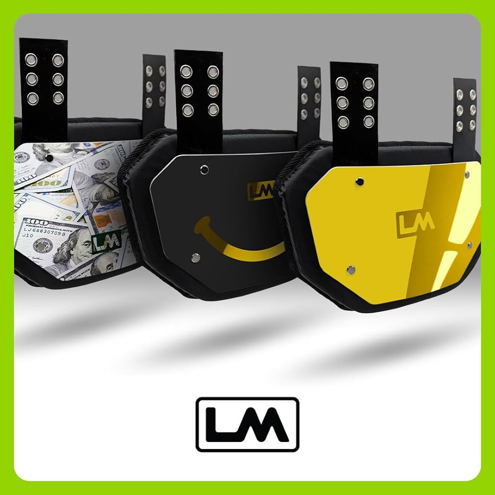 UNIVERSAL FIT + SIZE OPTIONS - Loudmouth's Football Backplate features adjustable nylon straps for a universal fit with various shoulder pad brands and models. Available in sizes for both youth and adult players, it ensures professional-grade protection while also promoting personal expression by offering multiple style variations.