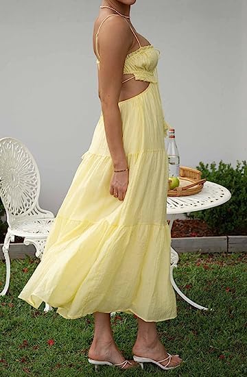 DESIGN: Women Y2k low cut maxi dress, casual summer dresses for women, long dresses for women, use solid color, tie-up, spaghetti strap, sleeveless, sheer mesh, irregular hem, sling, backless design, chic and stylish. Sexy backless beach dress for your holiday.