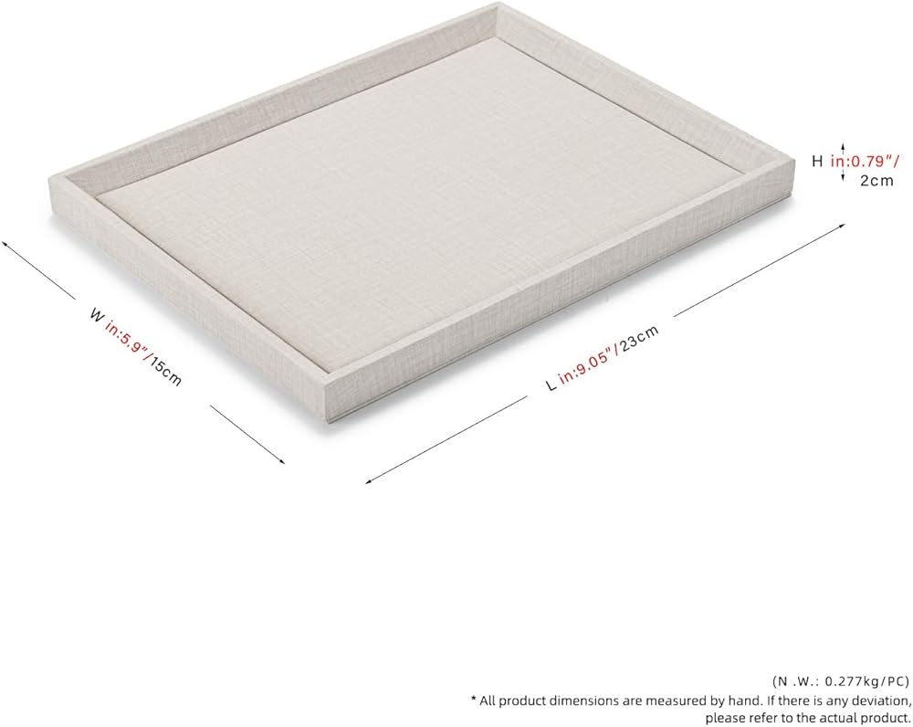 Overall Size:23 x 15 x 1.7CM/9.05"L x 5.90"W x 0.67"H.space saving design, this jewelry tray is big enough to hold your items without taking up too much space on your dresser.