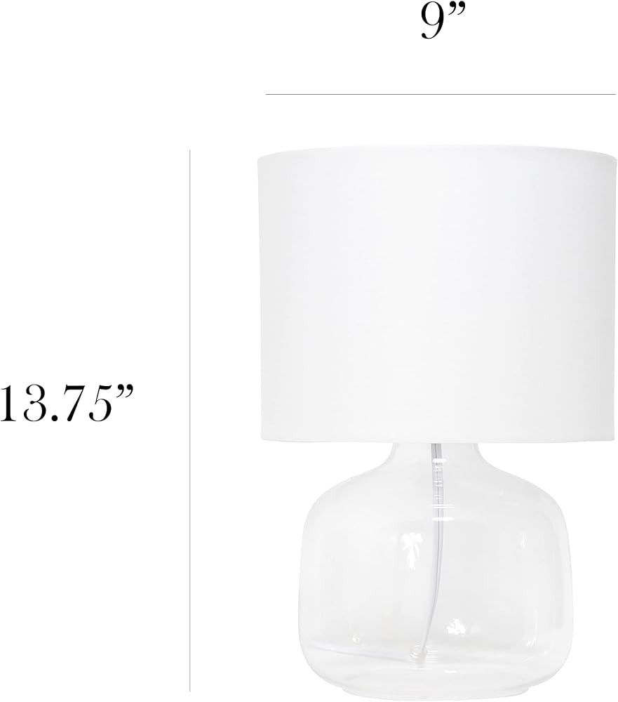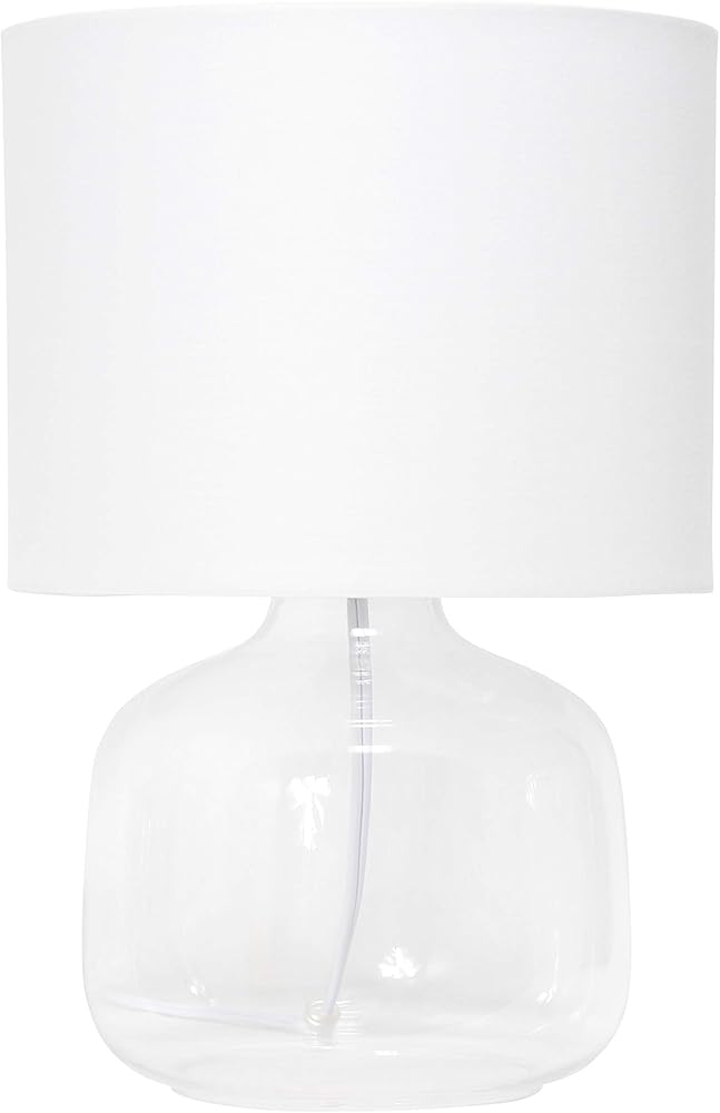 Simple Designs LT2064-CLW Glass Table Lamp with White Fabric Shade, Clear (Pack of 4)