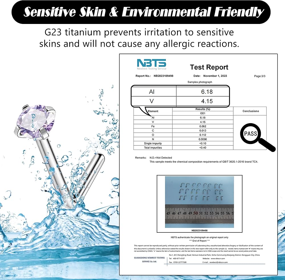 💎Titanium Nose Ring-This modern nose rings body jewelry is made with G23 titanium. Titanium is a highly stable metal known for its corrosion resistance, Titanium nose hoop is more suitable material for very sensitive skin people than 316L surgical steel nose ring. Additionally, these titanium nose rings stud is lightweight and very comfortable to wear, without burdening the skin.