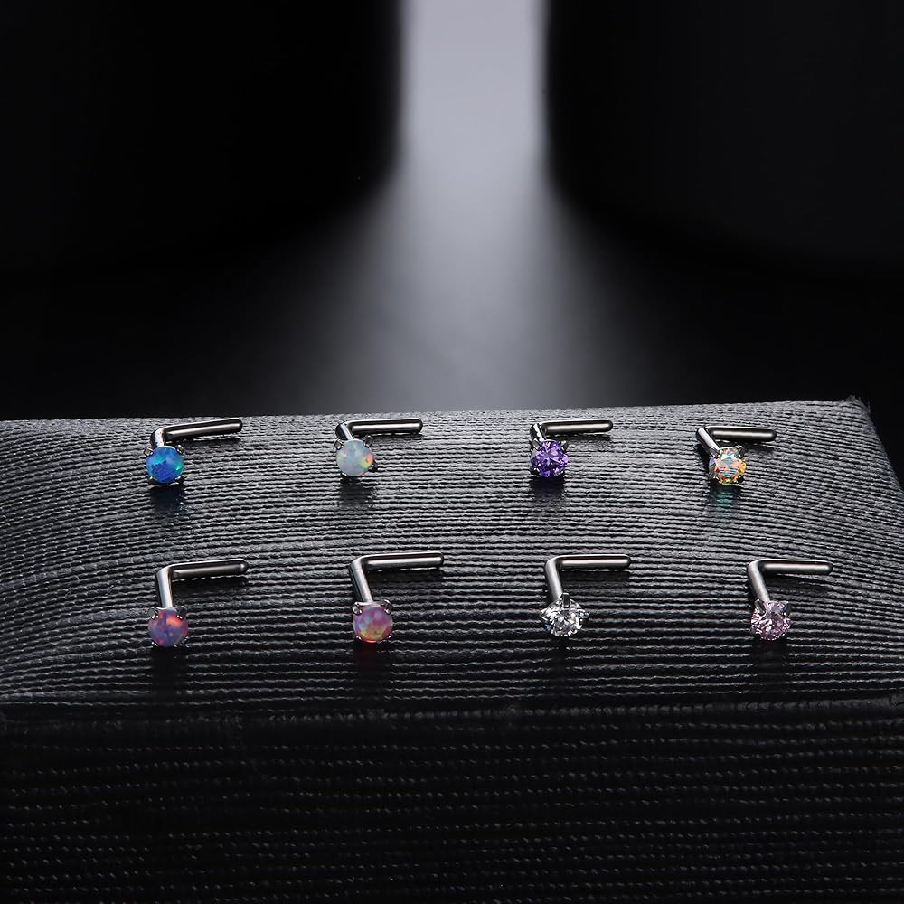 💎Nose Ring Set-8pcs L shaped nose rings studs in different color. Mix-styles give you mutiply wearring outfit;fashion and popular L shaped nose rings can meet your needs for being beautiful and fashionable.