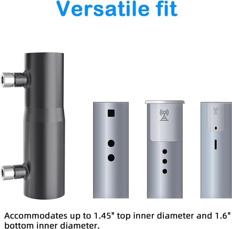 This Starlink Pipe Adapter is designed to accommodate a maximum top inner diameter of 1.38 inches and a bottom inner diameter of 1.5 inches, ensuring compatibility with various pipe size.
