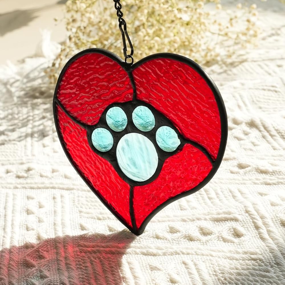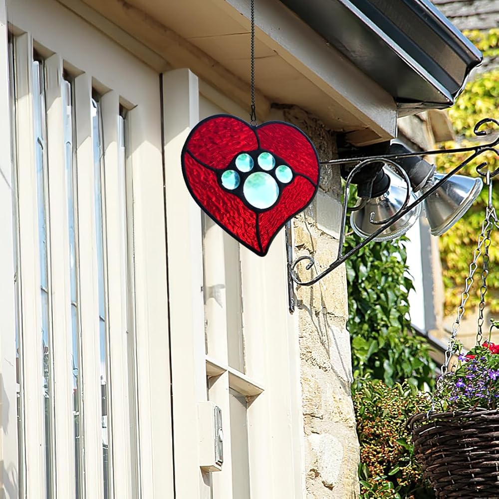 UNBREAKABLE BOND: This thoughtful pet memorial gift allows anyone who sees it to reminisce about happy times with their pet Handcrafted pet suncatcher in memorial of a beloved pet who crossed the rainbow bridge. The cute and unique design of pet paw print kit stained glass window hanging helps them always remember the unforgettable time spent with their pets.