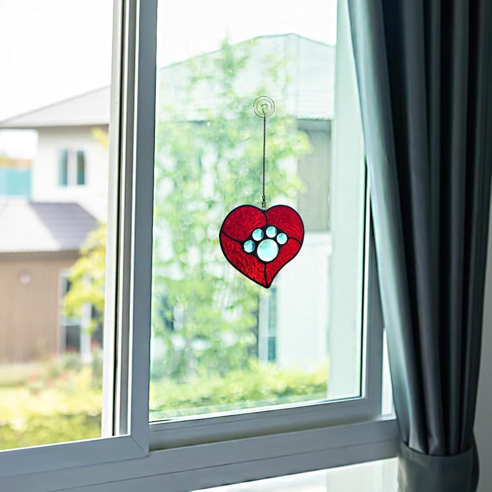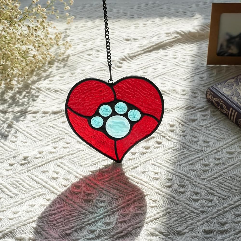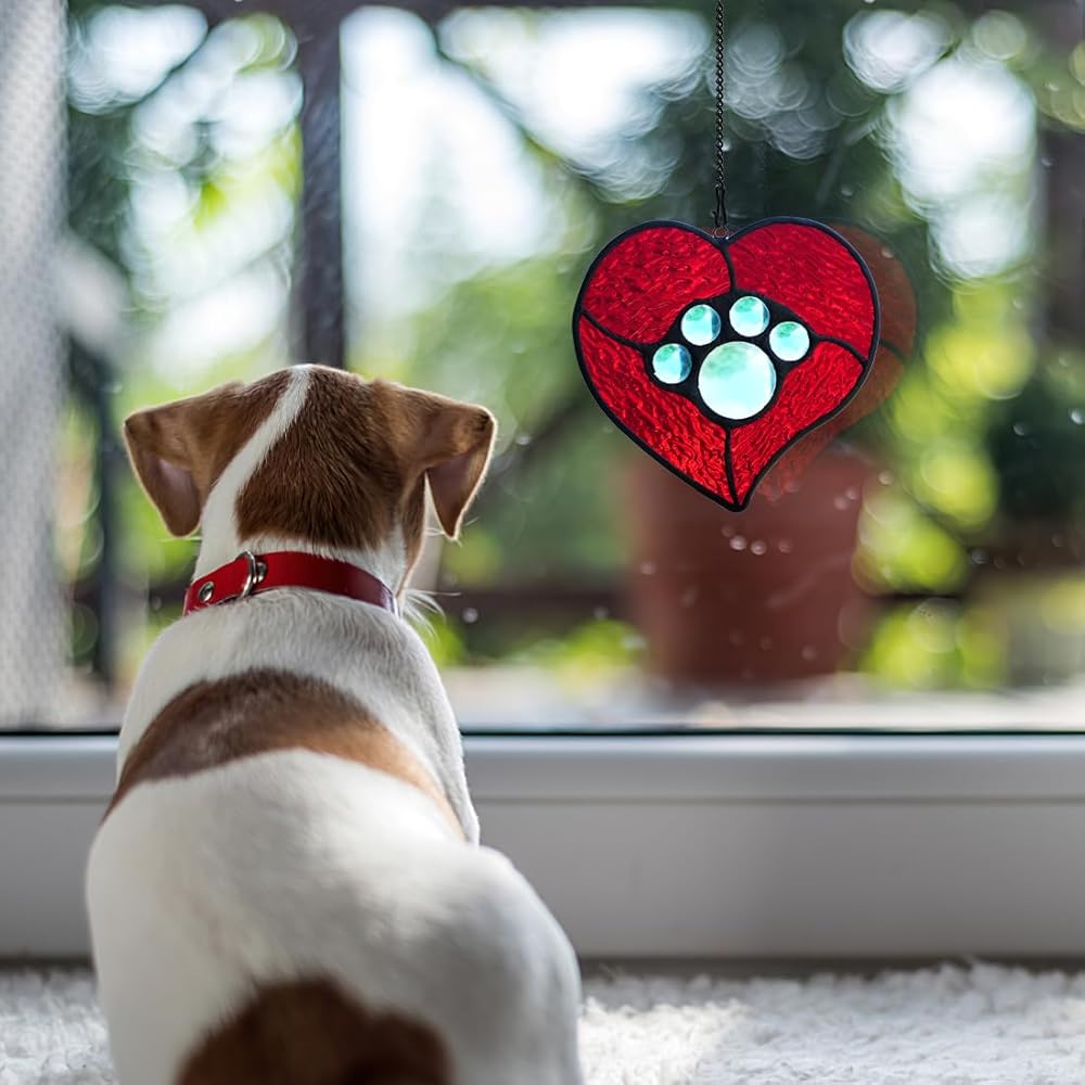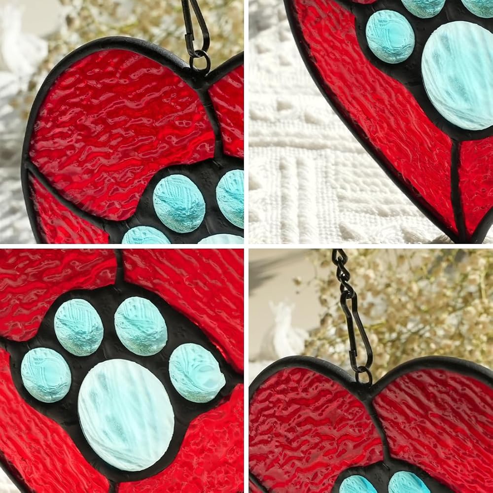 LOSS OF DOG SYMPATHY GIFTS : This is the perfect dog memorial gifts for loss of dog when your friend or family loss a beloved furry friend. Gifting our stained glass suncatcher for window loss of dog sympathy gift to your co-workers, friends or family and other dog lovers,dog lovers gifts for women and let them decorate their home and make their room warm. Our dog paw print suncatcher are a great loss of dog sympathy gift.