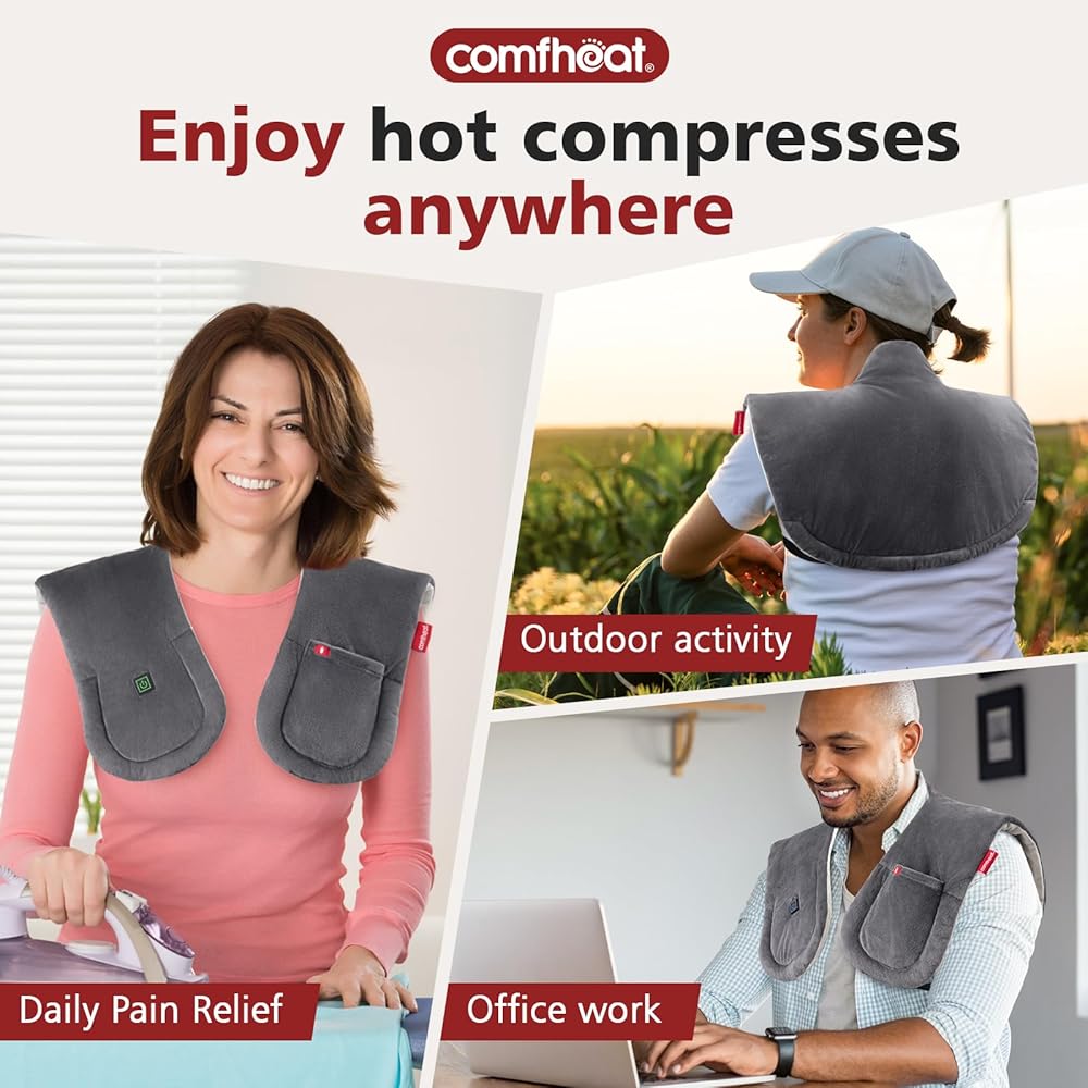Cordless Heating Pad for Neck & Shoulder & Upper Back Pain Relief, Rechargeable Heat Wraps with Battery, Electric Cervical Spine Warmer with 3 Heat Settings, Gifts for Women Men Mom Dad