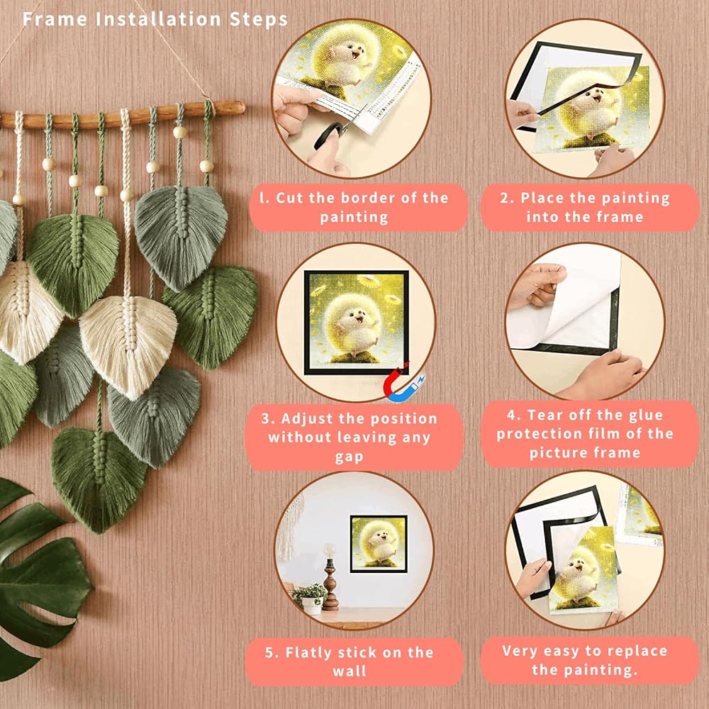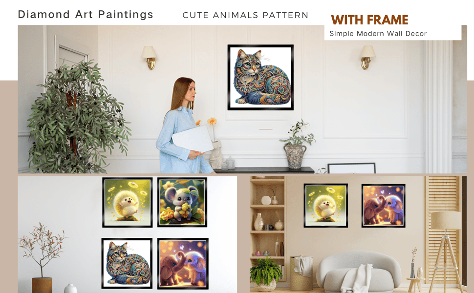 Easy to Make:Paint by number of the canvas, select the diamond dots and paste them onto the canvas with a pen, after finishing, cut the border and use the included frame to mount it on any wall you want to decorate!