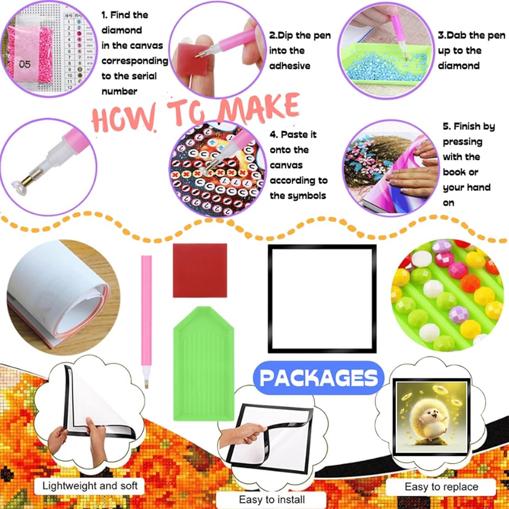 Complete Diamond Art Kits: Includes 11.8*11.8 inch canvas, extra 30% diamonds dot, 11.8*11.8 inch painting frame, painting tools, and accessories.
