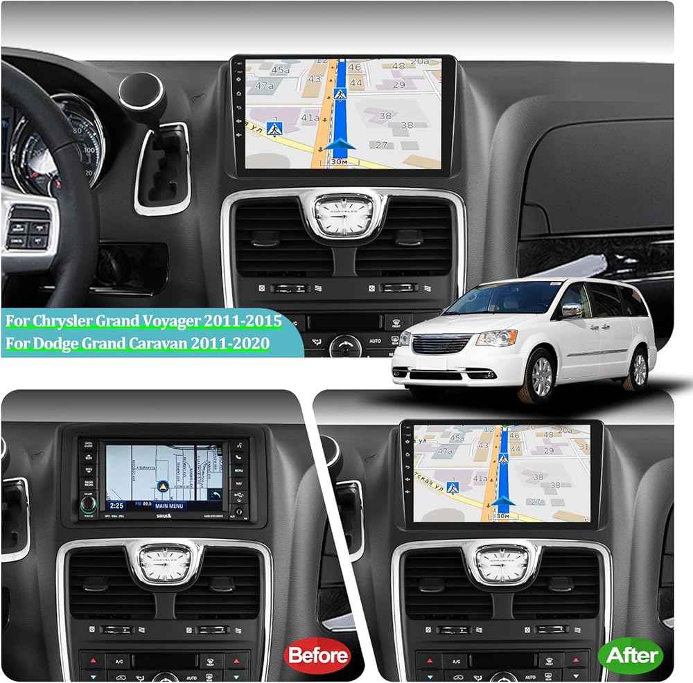 【Applicable Car Models】This car radio for Jeep Chrysler Grand Voyager 2011 - 2015 and for Dodge Grand Caravan 2011 - 2020, please compare your car center console and adapter connector before purchasing. Android 13 car stereo with 2G RAM 64G ROM. Head unit supports Bluetooth, WiFi, GPS, FM, Mirror Link, Rear Camera Input and External Microphone etc., meet your needs.