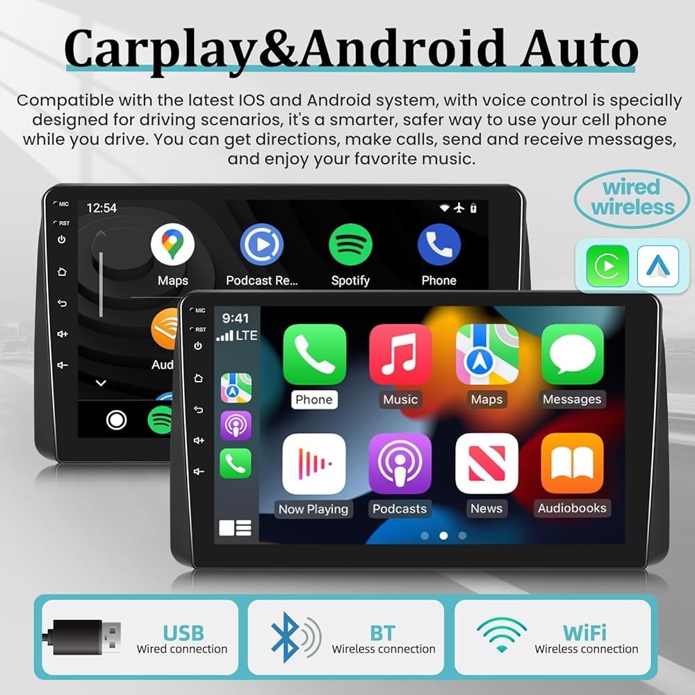 【Built in Carplay and Android Auto】Built-in wireless and wired Apple Carplay, and Android Auto. You can easily use GPS navigation, make calls, send/receive messsage, listen to music and much more functions via CarPlay or Android Auto while you focus on driving, which keep you stay focused, connected and entertained.