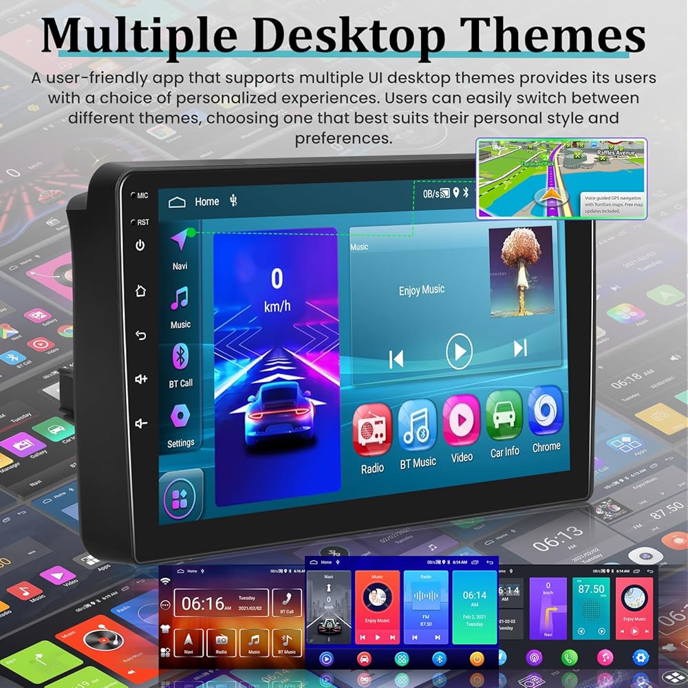 【Multi-Functions】Support Wi-Fi Connection/ IOS and Android Mirror Link / 28 Desktop Themes / 1080P HD Video Playback / Split Screen / GPS Navigation / Bluetooth (Phonebook support, hands-free calling) / Steering Wheel Control / Music / FM RDS Radio / Online & Offline Maps / Dual USB Input / EQ Setting.