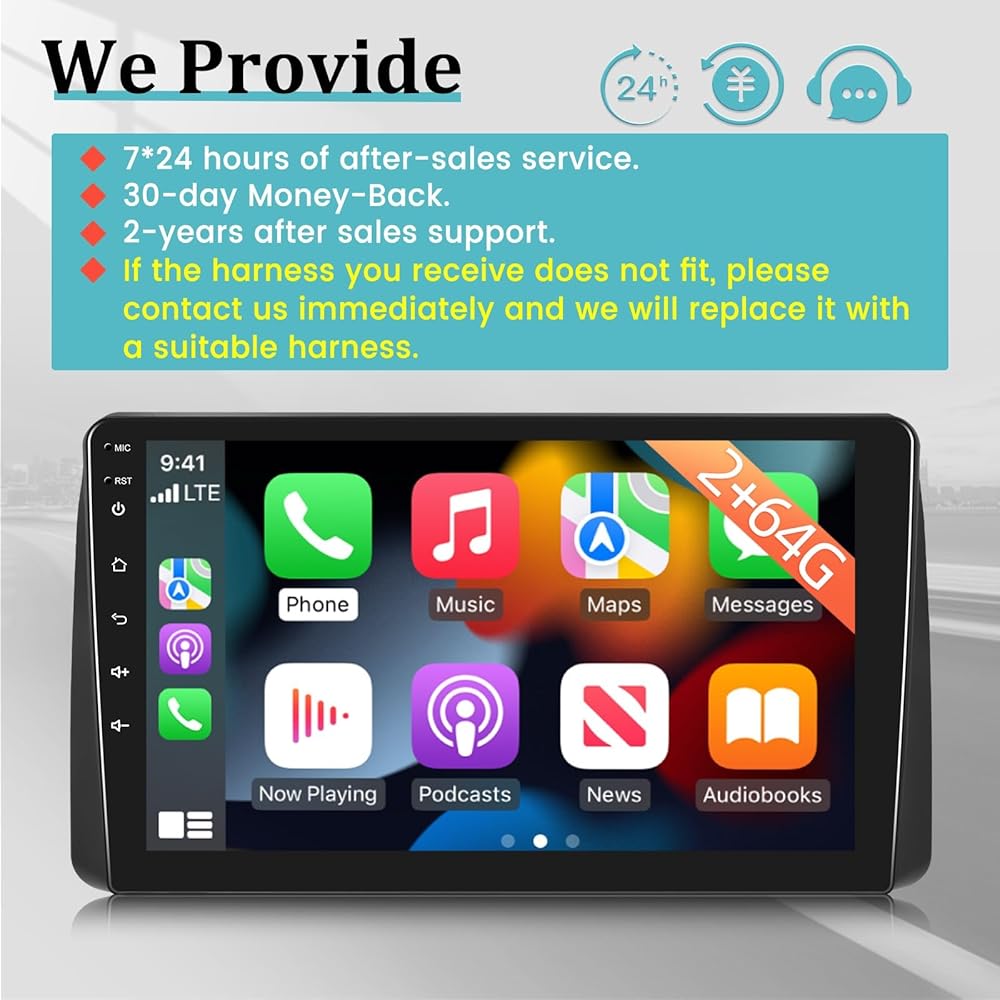 【No-Worry Guarantee】Our after-sale service include 30-day Money-Back, 12-month Replacement, life-time Technical Support and friendly customer service such as response E-mail within 24 hours are always here to support you troubleshooting . If you habe any question about this car radio, please be free to contact us.