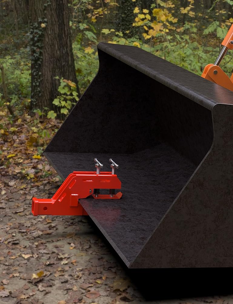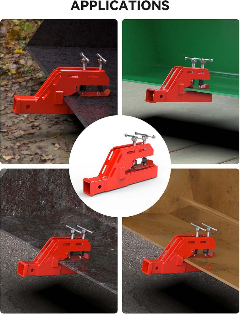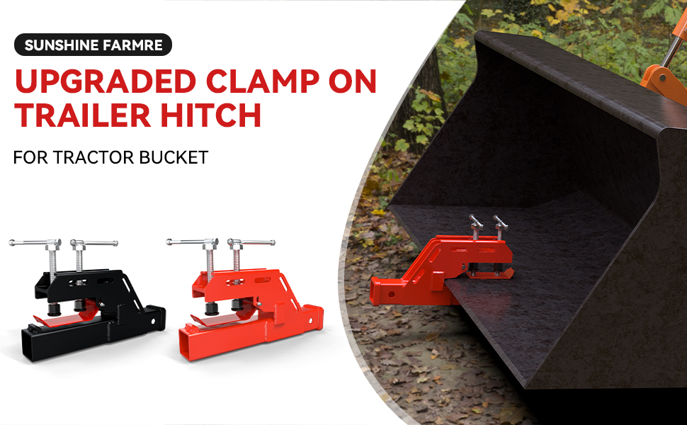 【Sturdy and Durable】Our clamp on bucket hitch is made of heavy duty steel construction and is coated with strong gloss black powder. It is designed for long-term outdoor use without rust.