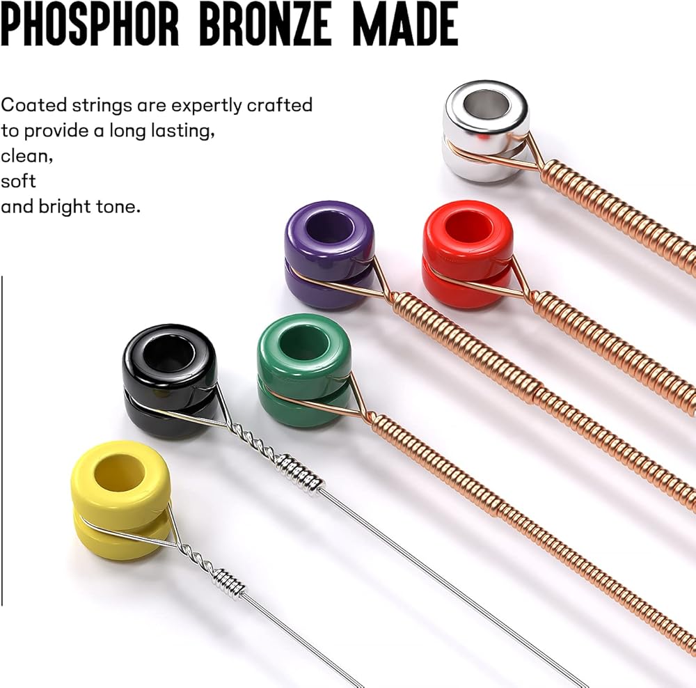 MUSCELL acoustic guitar string use 6 colors of beads to make your guitar looks more beautiful.After tested thousands of times, and made of phosphor bronze, the strings are corrosion-resistant and stable.