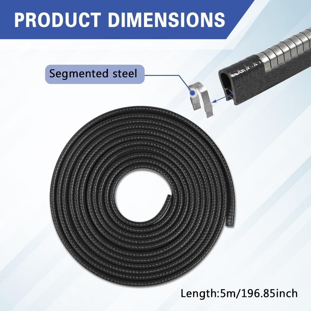 [Wide compatibility]: This Car Door Edge Trim Protector is universal and can be applied to all car door edges. Such as Sedan, Truck, SUV, ATV and other models. The total length is 5 meters, and the edge thickness is about 0.8 inches, which is enough for your daily use needs.