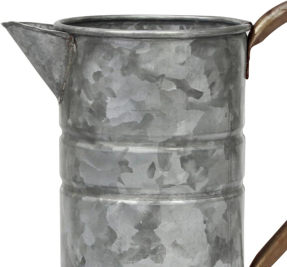Add a rustic touch to your home decor with Stonebriar's antique galvanized metal drinking pitcher with handle. This unique metal pitcher features an antique galvanized metal finish with a long copper metal handle and spout giving that rustic farmhouse decor feel. Pitcher measures 9.6" in height and 4.5" by 9.5" in width. It is the perfect size to use in the kitchen, living room, dining room, and bedroom. Drinking pitcher is multifunctional and can be used as a kitchen utensil holder or add your favorite dried flowers to create a beautiful vase centerpiece. You can also display fresh flowers in your metal pitcher when using a water tight liner. Stonebriar's metal drinking pitcher is the perfect way to spruce up your country rustic home decor or give this decorative pitcher as a gift for weddings, housewarming, birthdays, or any special occasion. Buy your Stonebriar metal pitcher today and instantly add interest to any room in your home.