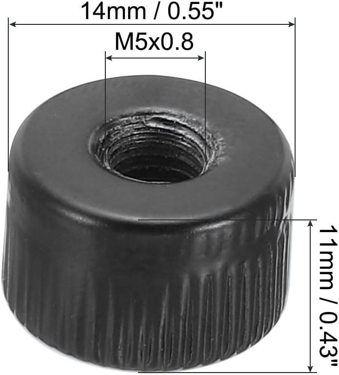Color: Silver Tone; Material: Carbon Steel; Thread Size: M5x0.8; Total Size: 14x11mm / 0.55x0.43 inch (D*H); Package List: 15 Pack of Cap Nut