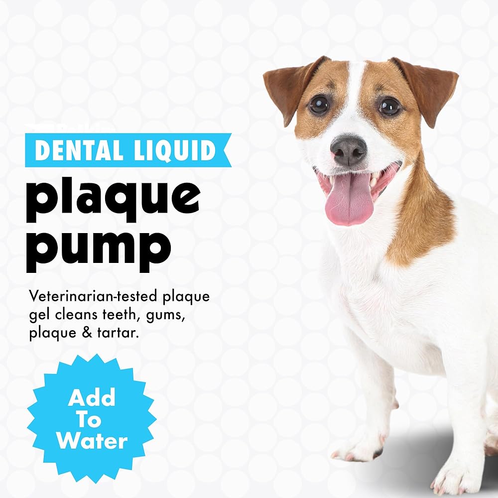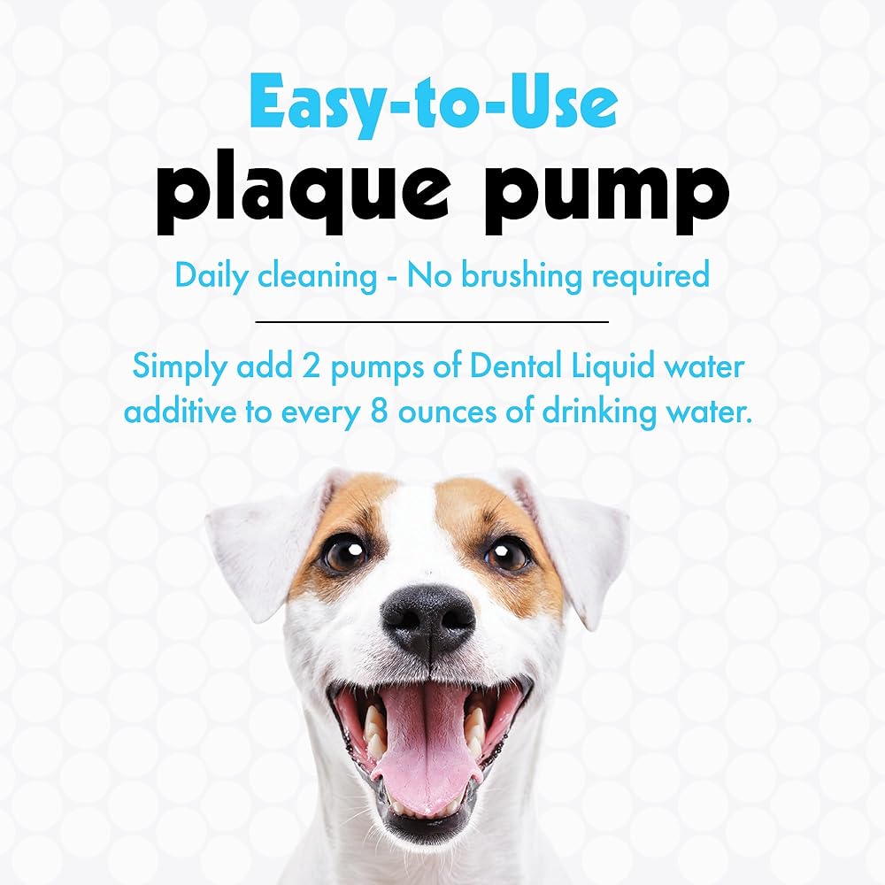 Petkin Dental Liquid Plaque Pump, 16 Fl Oz - Dental Water Additive Cleans Pet's Teeth, Gums, Plaque & Freshens Breath - Invisible Formula Has No Taste, Color, or Smell - for Dogs and Cats