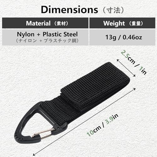 🍀 MATERIAL -- Nylon webbing and zinc alloy hook, key ring, weight: 30g/1.06oz, suitable for <50mm webbing